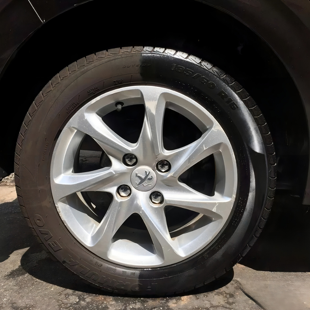 1️⃣ Aplique o produto diretamente no pneu com pincel ou esponja.